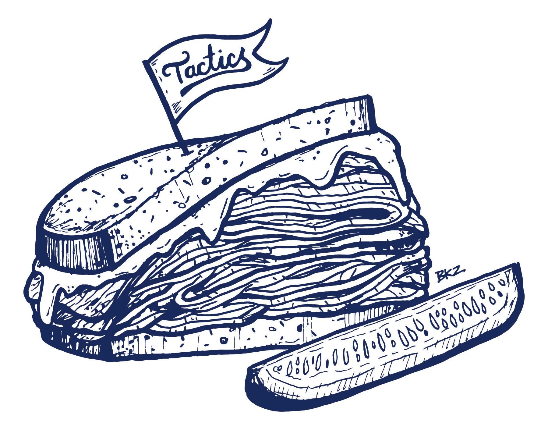 The BKZ x Tactics Art Lab was a limited collection based on my art inspired by east coast style delis. The collection included 2 custom graphics and custom hand drawn word mark which was worked into several different styles for graphics, labels and tags. We released the collection with a party at the Tactics Bend shop where we turned it into a deli serving pastrami and corned beef sandwiches.